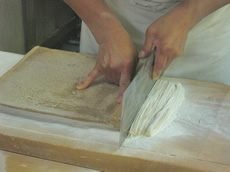 麺の太さにも気を遣っていて、切った後、太いのや細すぎるのがあったときは、それを取り除いています。