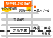 ※当館の専用駐車場はありません(障害者手帳をお持ちの方、団体利用のバスには、若干駐車スペースがあります。お問い合わせください) ※隣接する高島平温水プールの有料駐車場(19台)をご利用いただけます(40分まで無料の処理をしますがそれ以降は20分ごと100円がかかります)。 ○ガイドツアー 熱帯環境植物館では、ガイドツアーを行っていますのでご利用下さい ◆団体でご利用の場合は、事前にお電話でご予約ください ◆各種イベント、お申し込み状況により休止することがあります