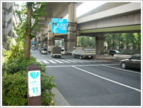 地図を見ていただくと分かるのですが、すごい直線が続きます。 木々も消えてしまいました。 お!よくよく見てみると、柵に魚の模様があります。 こういう細かい心遣いがいいですねぇ。 石神井川にはいろいろな橋が架かっていますが、 「下頭橋」はなにかと名が知られているようです。 旧川越街道に昔からかけられていた橋のようです。近くに当時の石碑も祭られていました。 そんなこんなで、川越街道通過です。