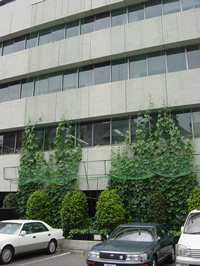 窓から直接入ってくる夏の日差しを遮るとともに、植物の蒸散作用でその植物の廻りの温度を下げるので、緑のカーテンを通って入ってくる風はとても涼しく感じられるのです。