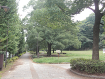 赤塚公園の交差点の歩道橋のそばにどんぐりの林があります。